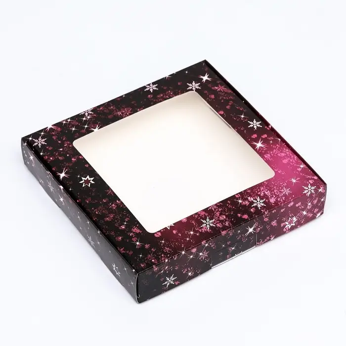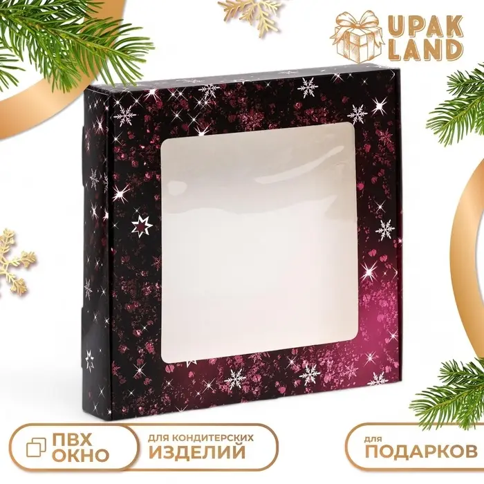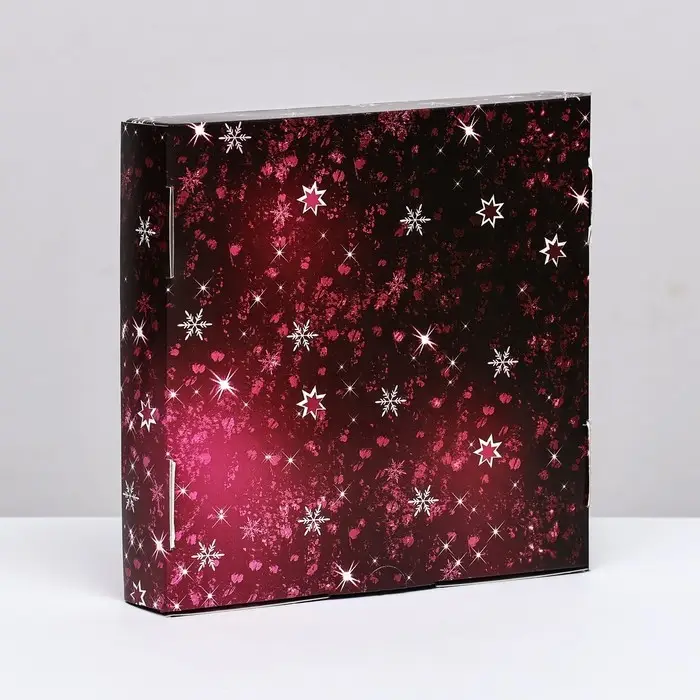 - Компактные размеры: Коробка с размерами 16×16×3 см легко поместится на полке или под ёлочкой. Оптимальные пропорции делают её универсальным выбором для упаковки разнообразных праздничных подарков или кондитерских изделий.