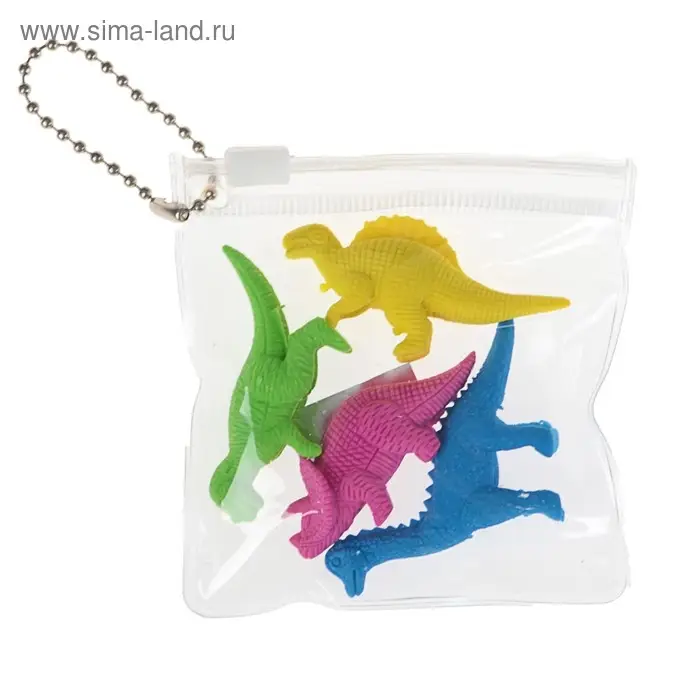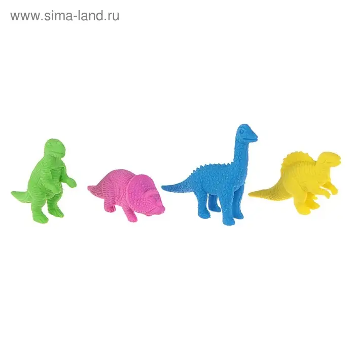 Набор ластиков фигурных 4 штуки "Динозавры" в пакете на зип-молнии (штрихкод на штуке) МИКС