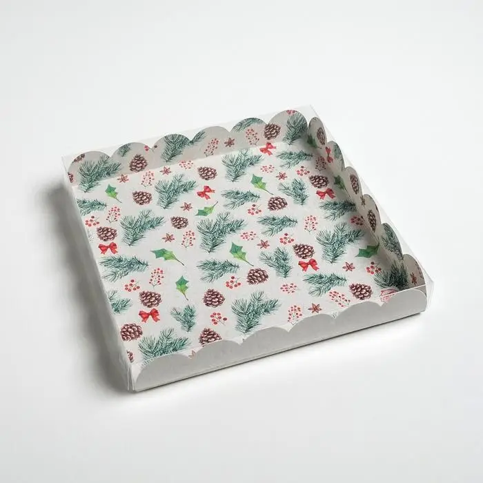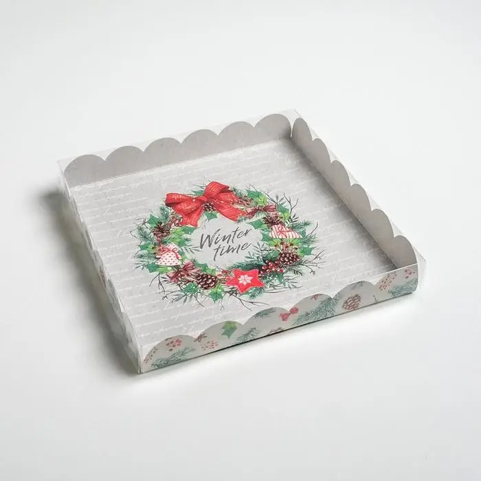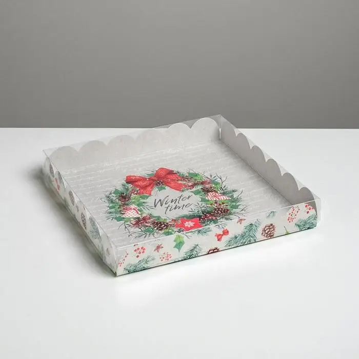 Коробка для кондитерских изделий с пластиковой крышкой «Winter time», 21 х 21 х 3 см