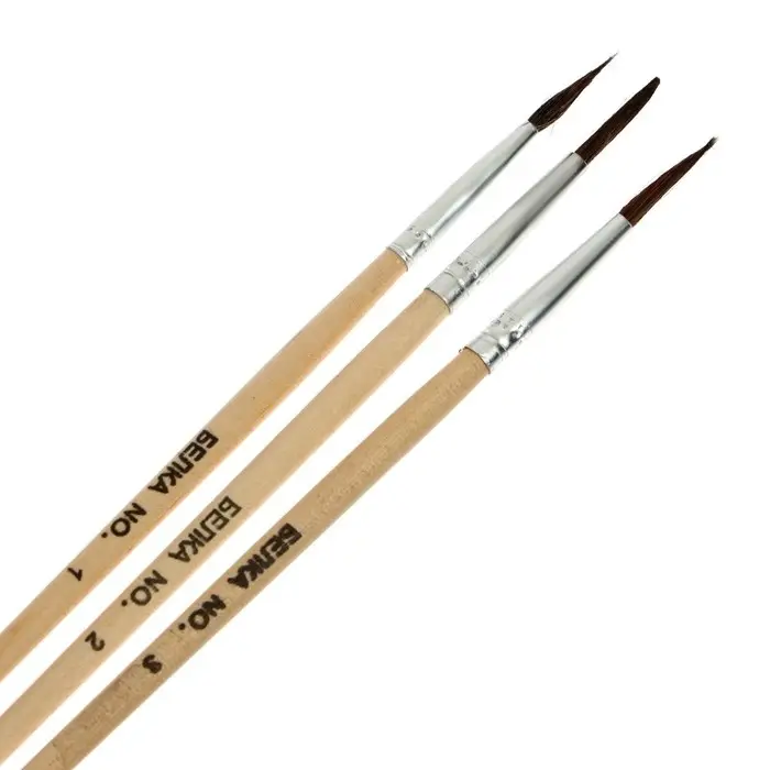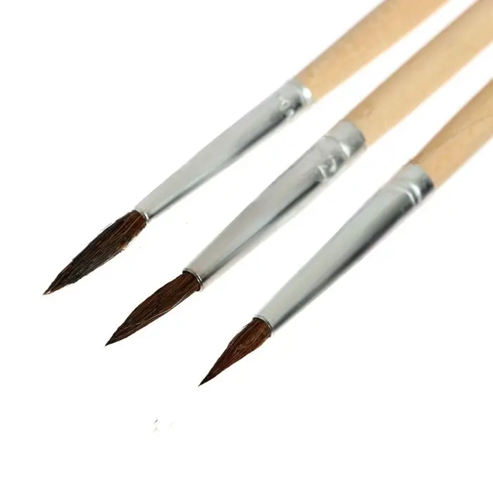 Набор кистей белка круглые 3 штуки (№1,2,3) с деревянными ручками на блистере