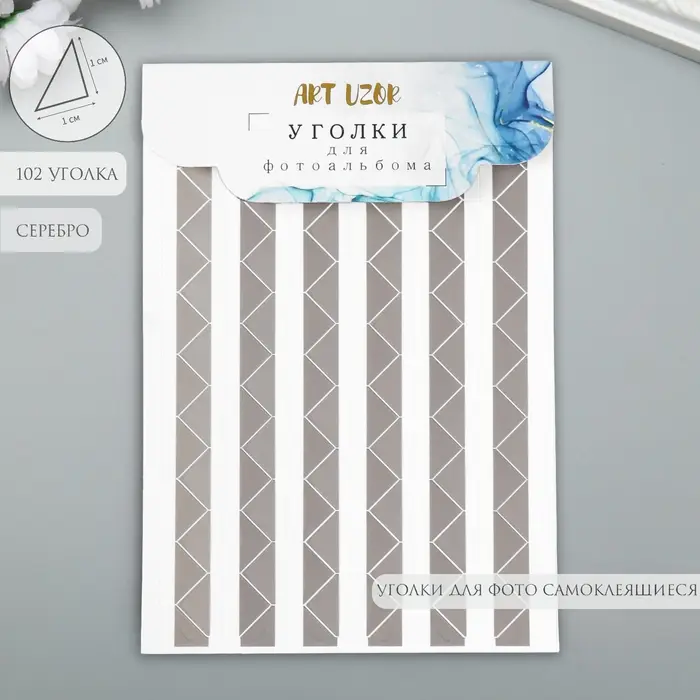 Набор уголков с кармашком для фотографий 102 уголка "Серебро" 10,3х15,1 см