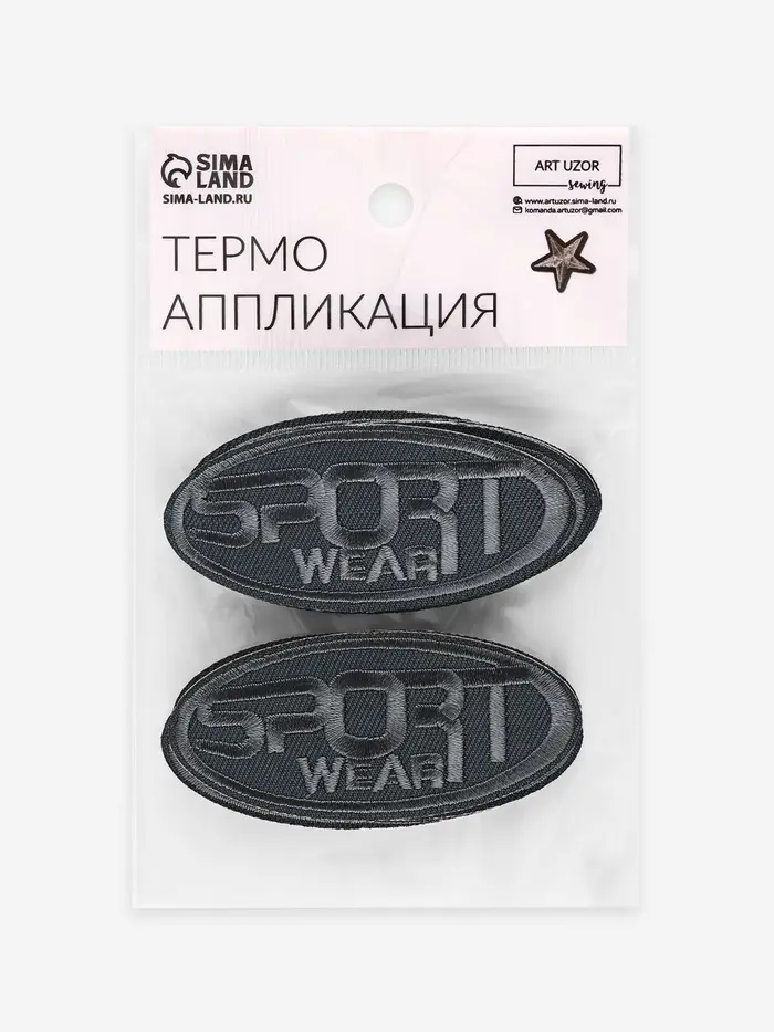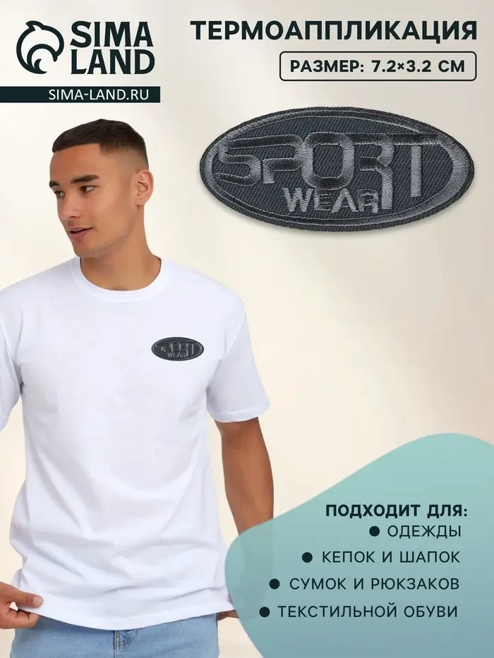 Термоаппликация Sport, 7.2×3.2 см, серая
