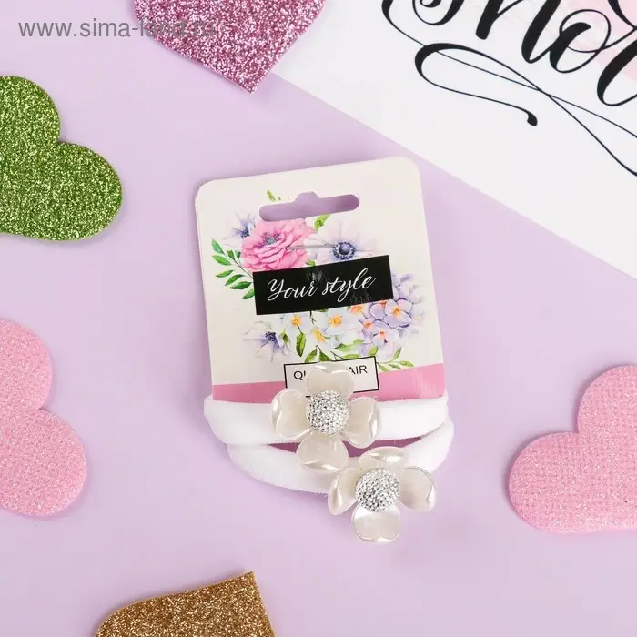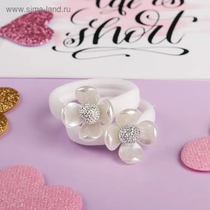 Резинка для волос "Белая купавка" (набор 2 шт) белый