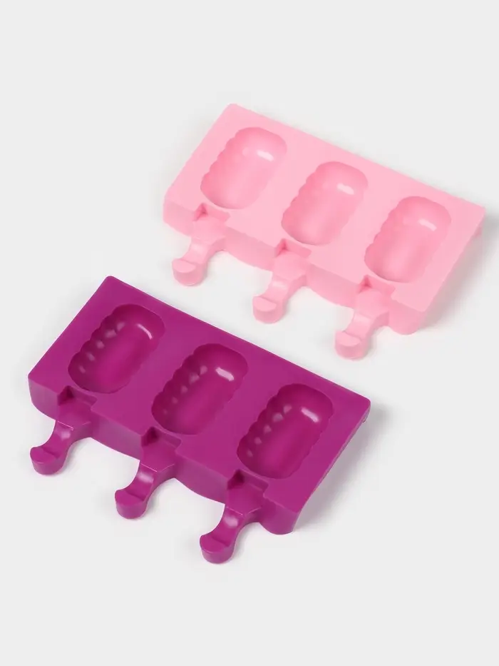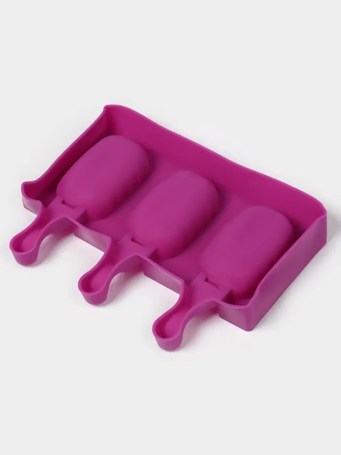 Набор форм для мороженого Доляна, 3 шт, силикон, 14×7,5×2,5 см, цвет розовый