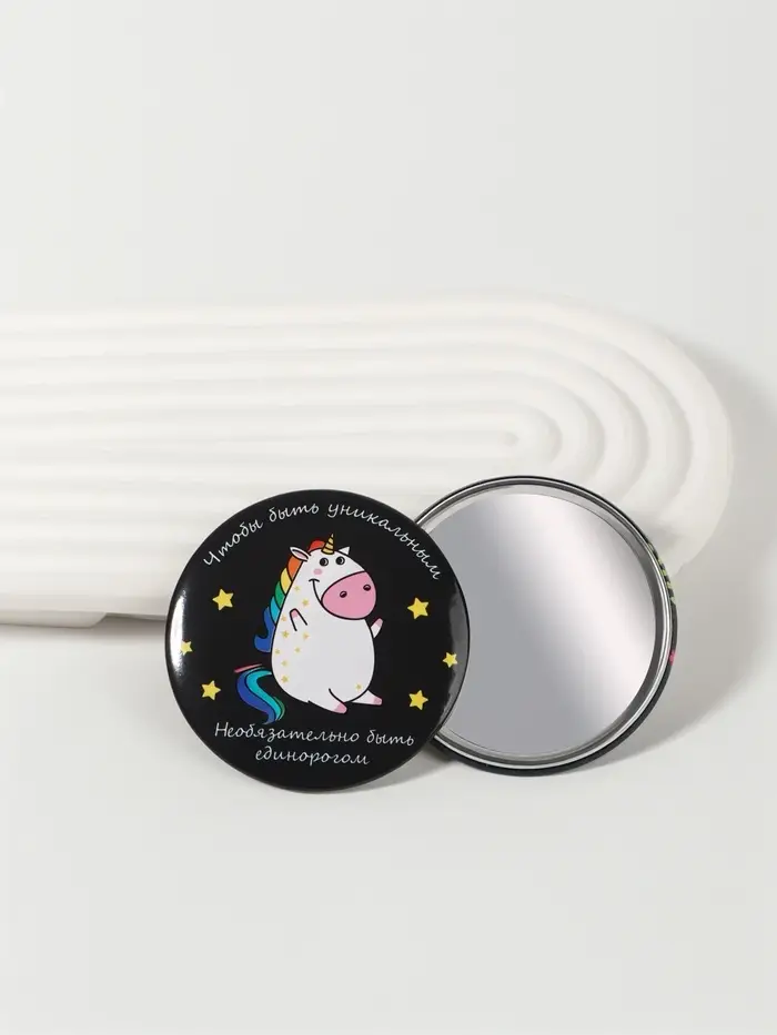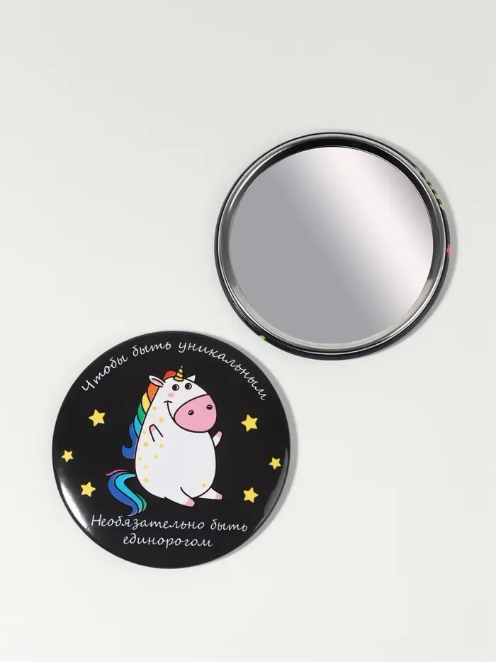 Зеркало карманное «Единорожка», d=7.5 см, разноцветное