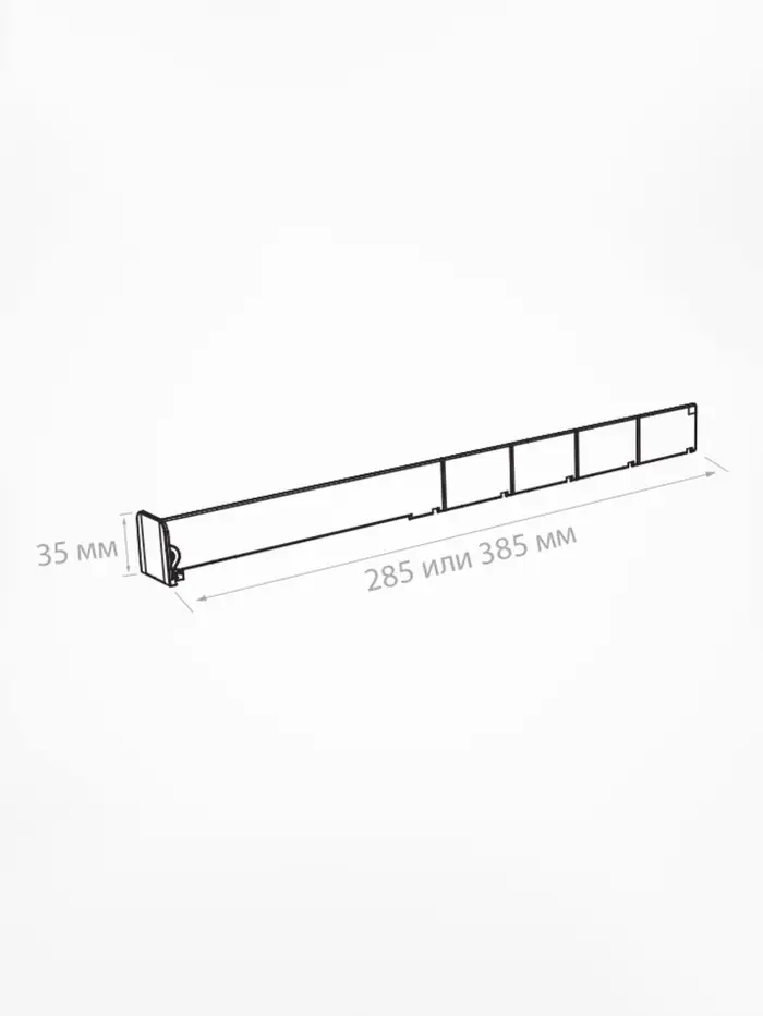 Пластиковый обламывающийся разделитель c передним ограничителем 80 мм, 185-385×35×120 мм