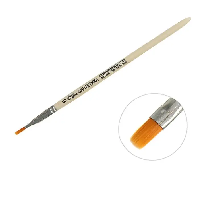 Кисть для рисования, Синтетика Плоская № 6 (ширина обоймы 6 мм; длина волоса 10 мм), деревянная ручка, Calligrata