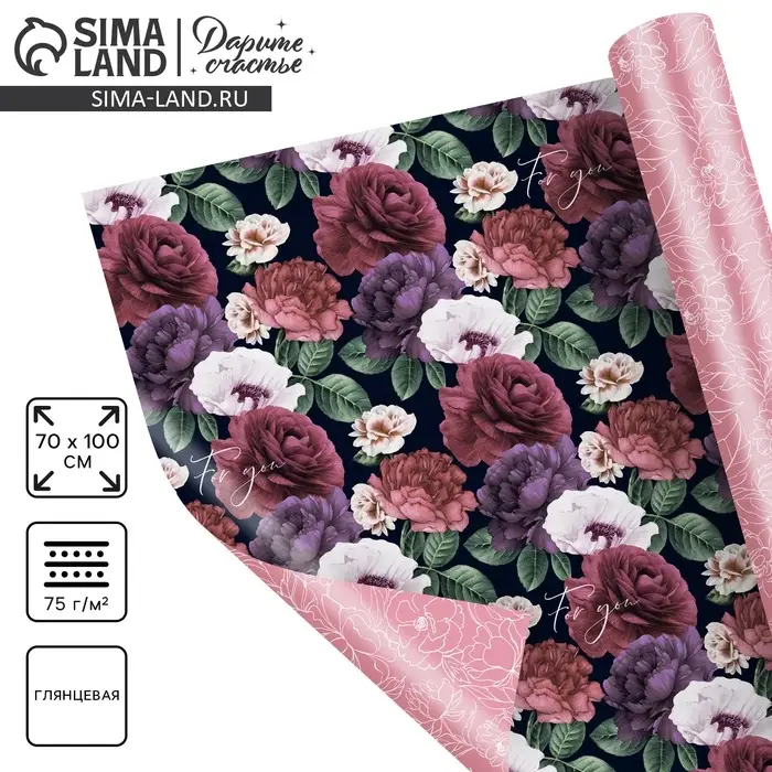 Бумага упаковочная глянцевая двухсторонняя For you, 70×100 см