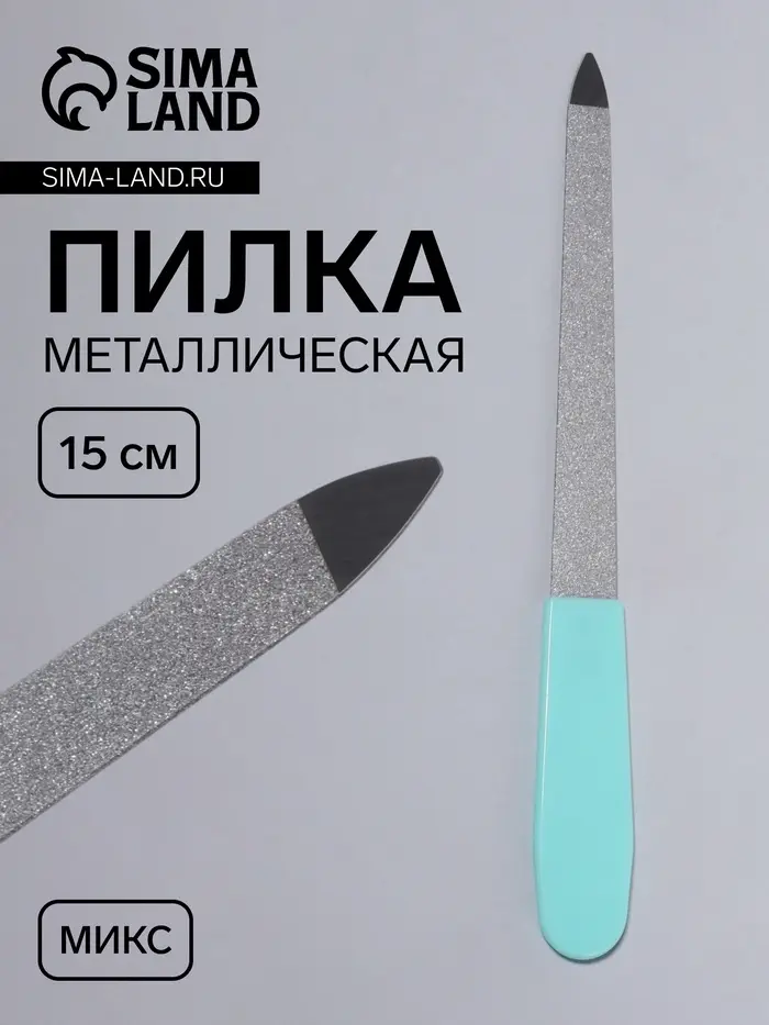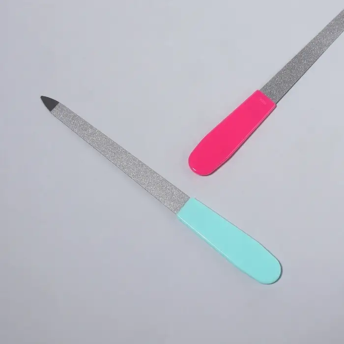 Пилка металлическая для ногтей, прорезиненная ручка, 15 см, МИКС