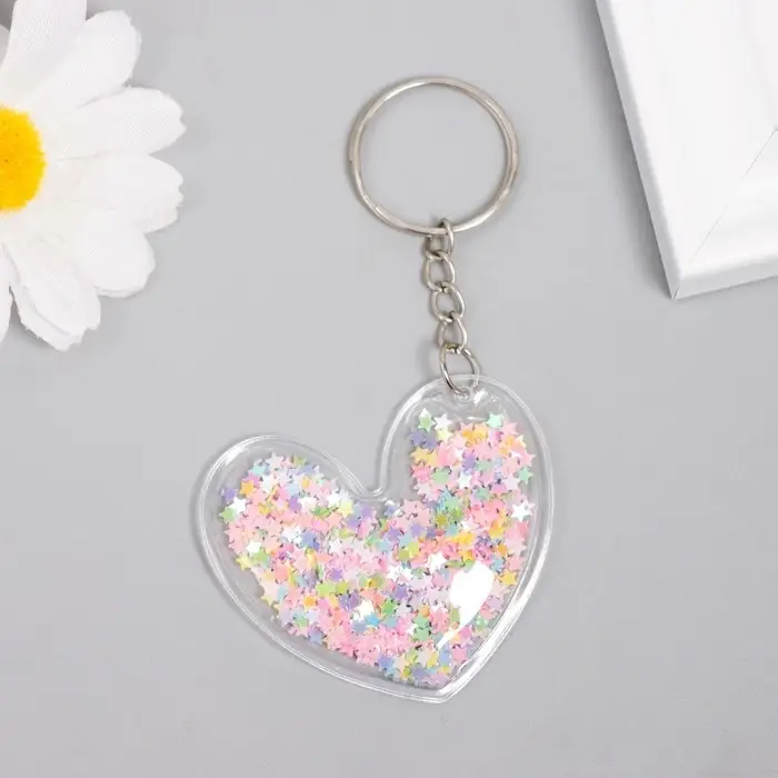 Брелок для ключей на кольце «Сердечко», пластик с глиттером, 5.2×4.8 см, МИКС