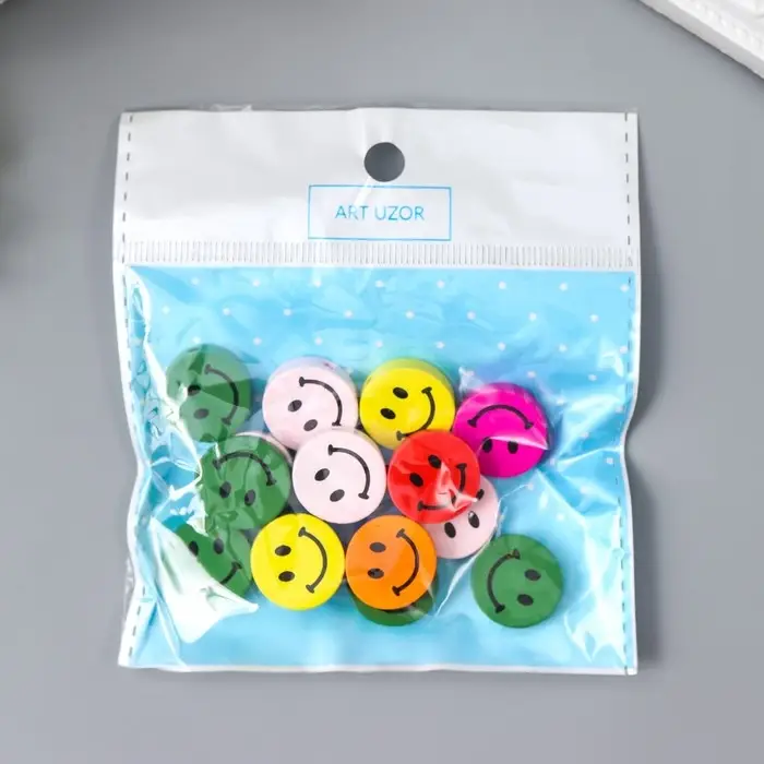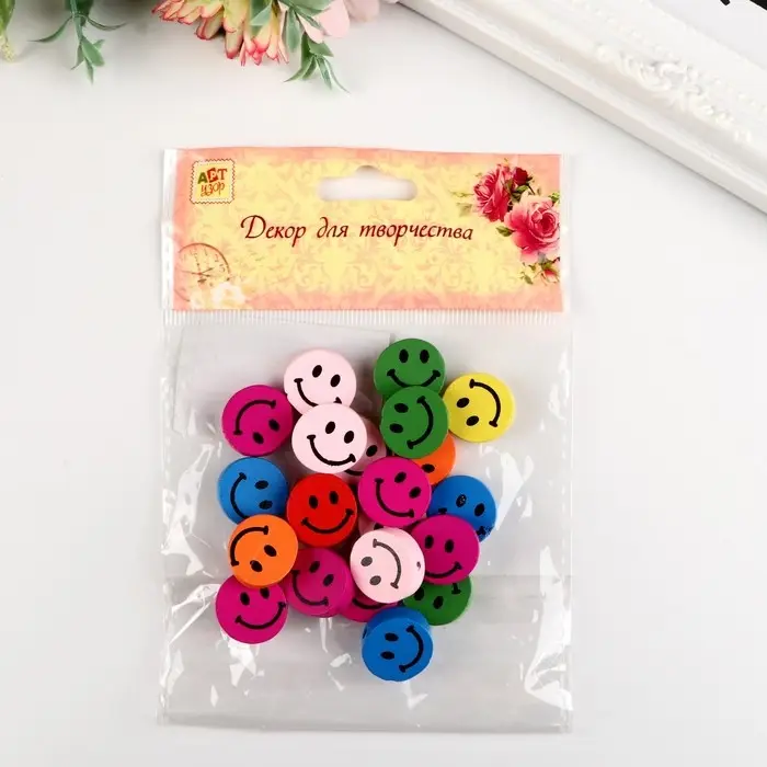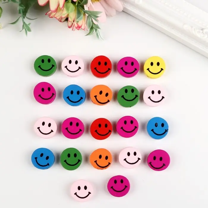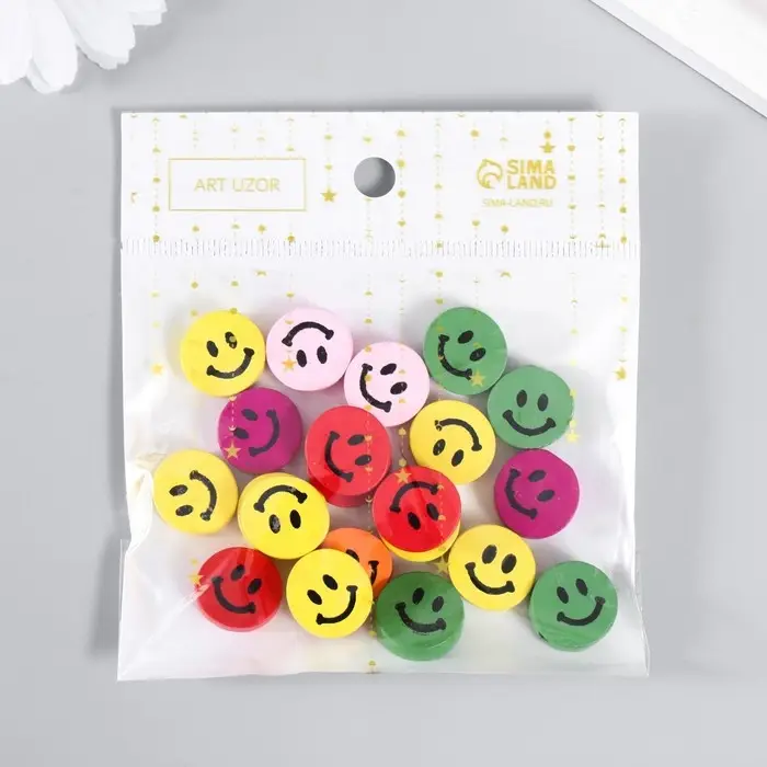 Набор бусин для творчества дерево "Смайлики цветные" набор 15 гр 0,6х1,7х1,7 см