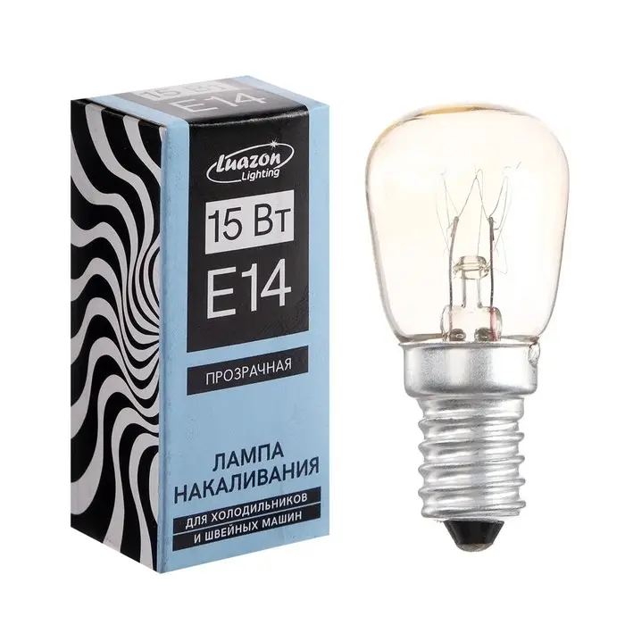 Лампа накаливания, 15 Вт, E14, 220 В, для холодильников и швейных машин, прозрачная