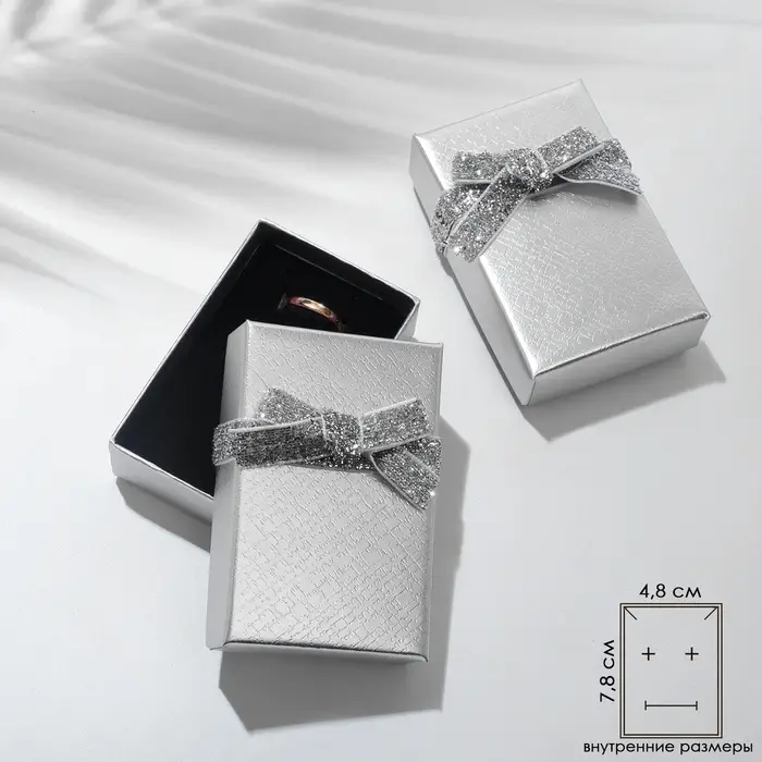 Коробочка подарочная под набор «Сияние», 5×8 (размер полезной части 4.8×7.8 см), цвет серебро, вставка чёрная