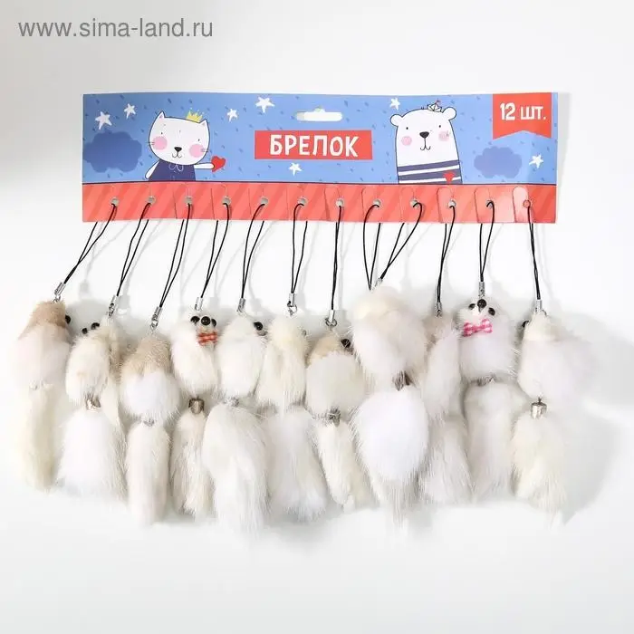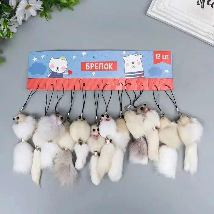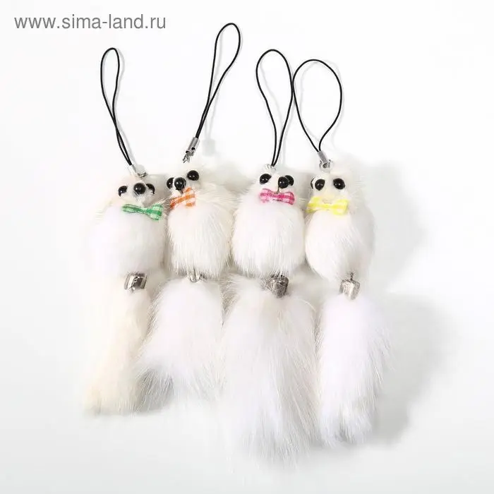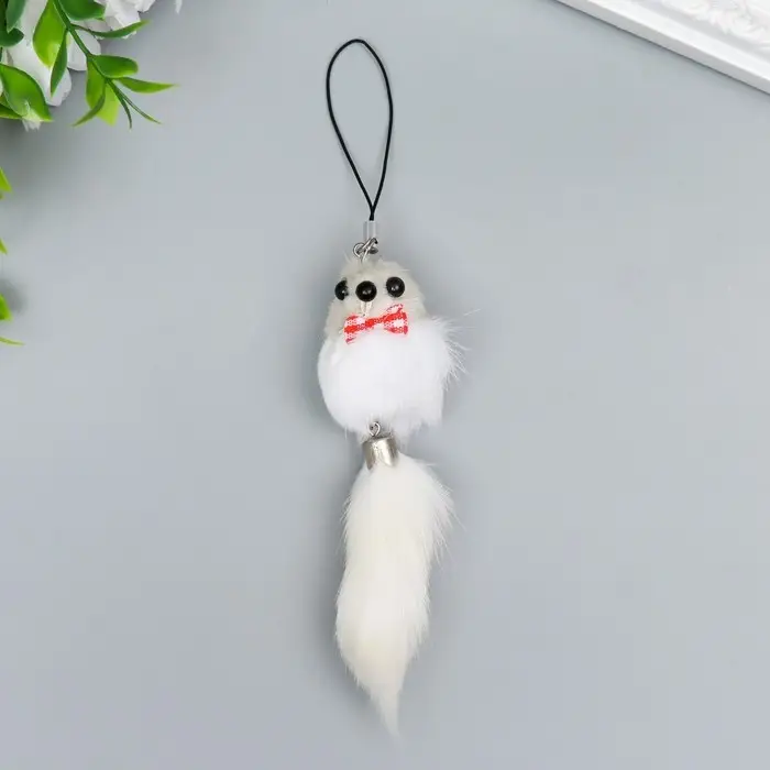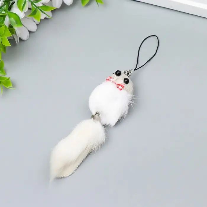 Пушистик на подвеске "Мышонок белый" МИКС 8,5х3,5х3,5 см