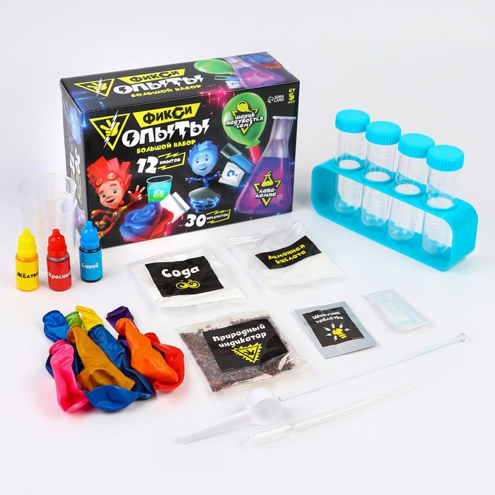 Набор для опытов Фиксики «Фикси опыты. Большой набор», 12 опытов, Файер и Нолик
