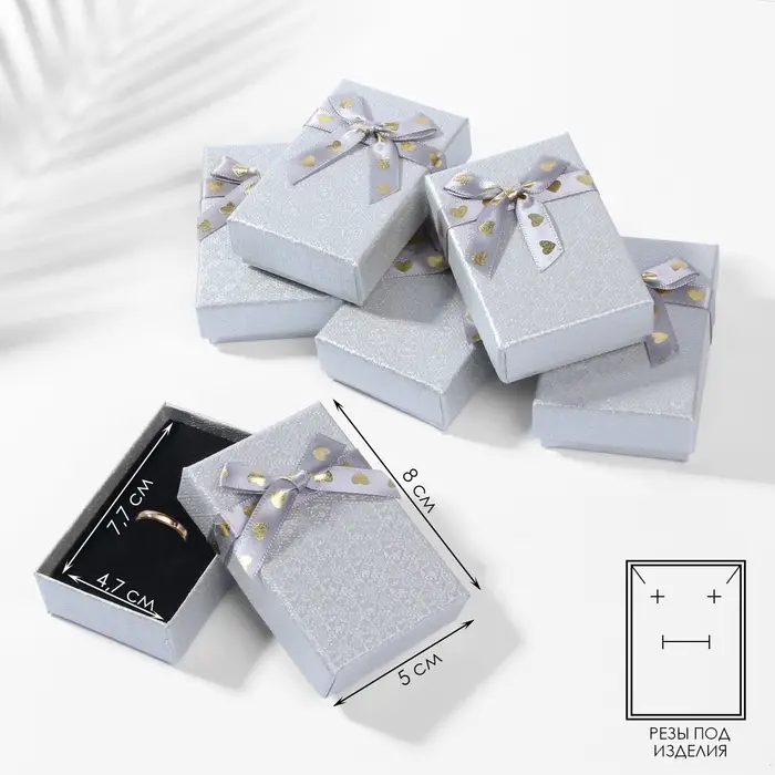 - Элегантный дизайн: серебристый цвет и бантик делают коробочку идеальной для романтических подарков, особенно в день Святого Валентина.