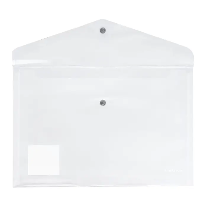 Папка-конверт на кнопке формата А4 из высококачественного прозрачного пластика с текстурой поверхности "зеркало", на которой не видно отпечатков пальцев и мелких царапин.