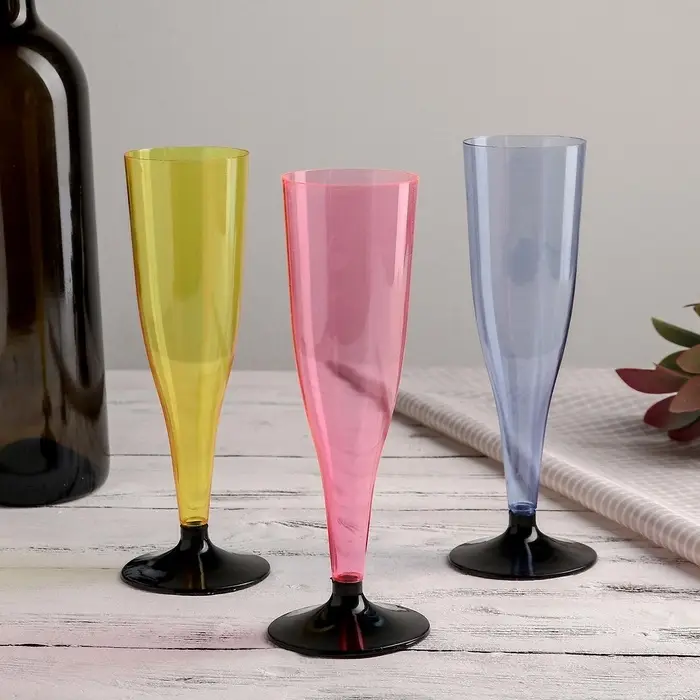 Бокал одноразовый для шампанского «Флютэ», 100 мл, пластик, МИКС