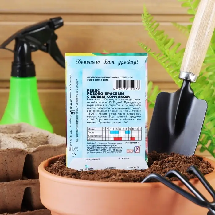 Семена Редис Розово- красный с белым кончиком, 3 г