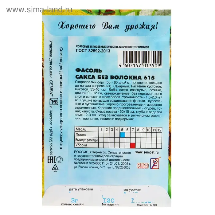 Фасоль Сакса без волокна 615 высаживается сразу на постоянное место, минуя этап рассады. Ей требуется регулярный полив, много солнца и при необходимости удобрения. Растет фасоль активно, не требуя много внимания. Также не забывайте, что все бобовые привносят в почву азот, а потому уже на следующий год место фасоли будет более плодородным и сюда можно высадить более привередливые культуры. За счет раннего урожая вы сможете оценить сладость сорта Сакса 615 уже в июле, а новые бобы будут появляться на растении вплоть до осени!