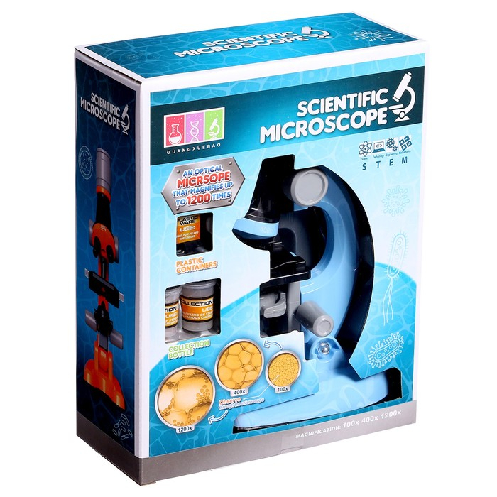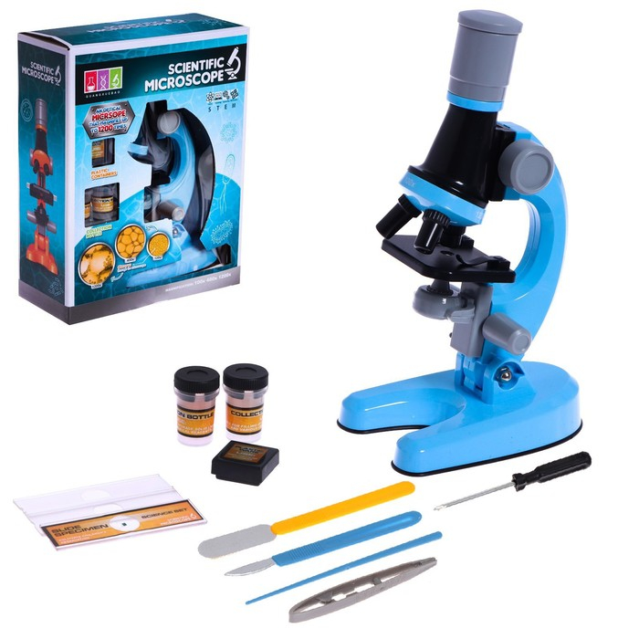 Микроскоп детский «Юный ботаник» кратность х100, х400, х1200, голубой, подсветка
