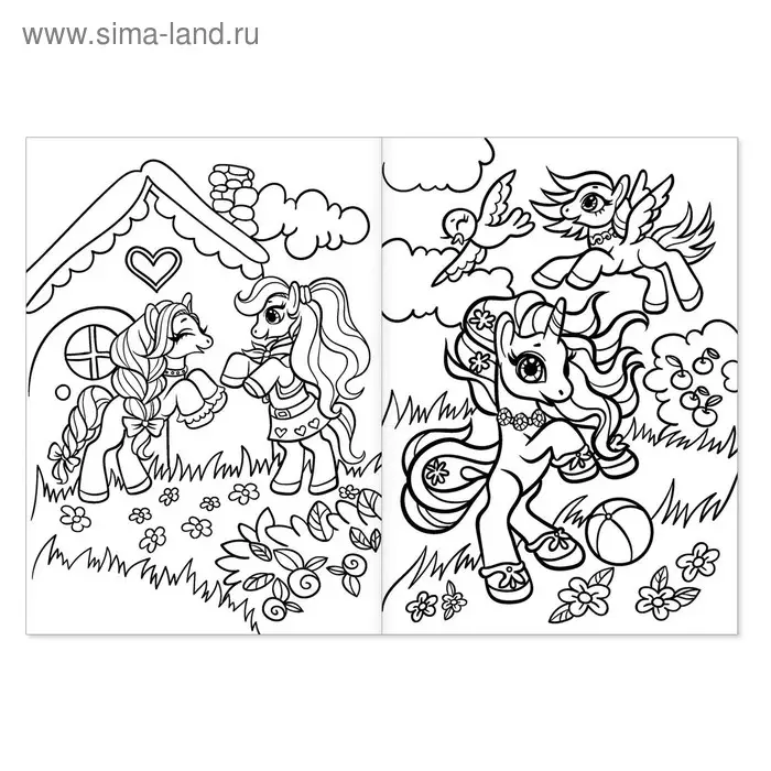 Раскраска «Мир единорогов» — книга с контурными картинками волшебных пони. Малышка сможет их раскрасить карандашами, красками или фломастерами. Страницы и обложка выполнены из бумаги.