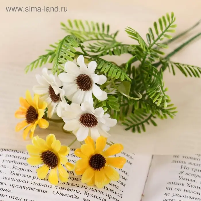 Букет искусственный «Ромашки с папоротником», 20 см