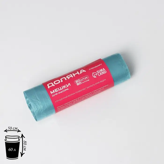 Мешки для мусора Доляна «Стандарт», 60 л, 50×80 см, 8 мкм, ПНД, 20 шт., синие
