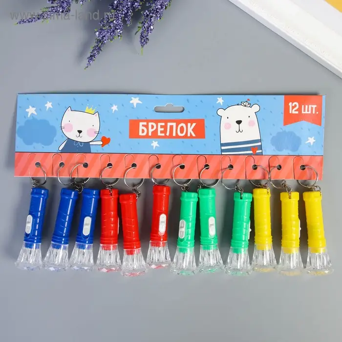 Фонарик брелок для ключей на кольце «Полоски», светит, 6.5×2.5×2.5 см, МИКС