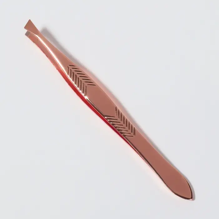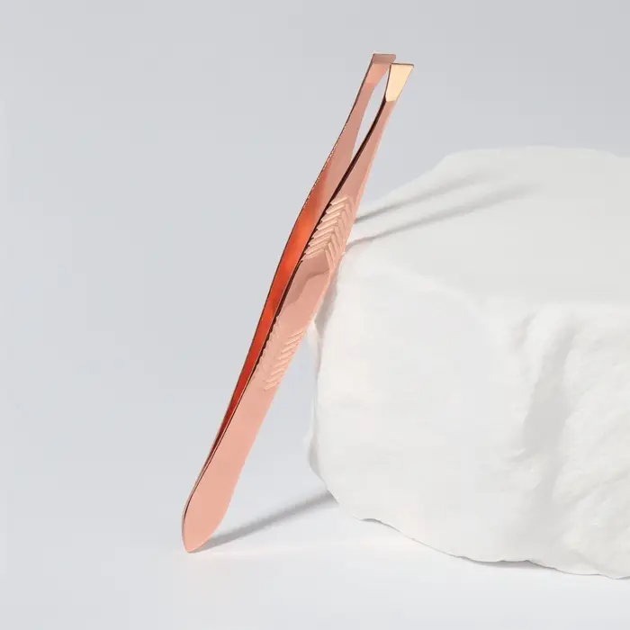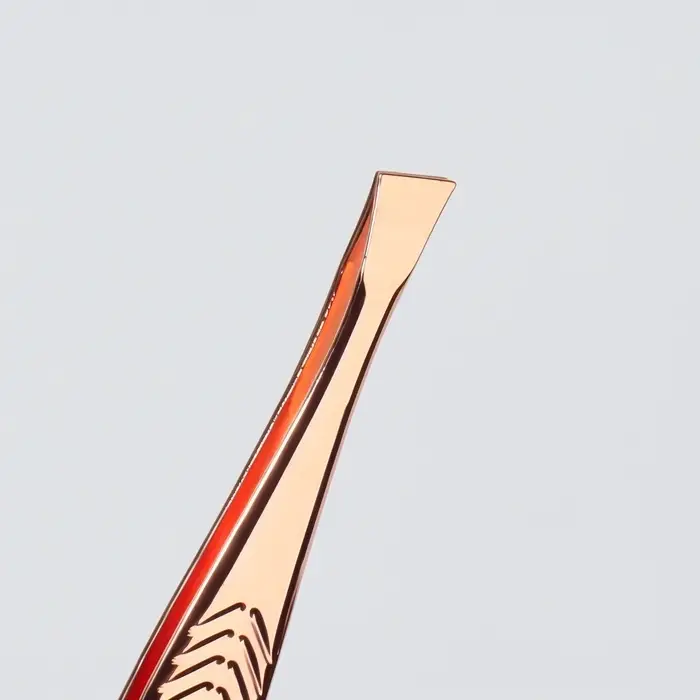 Пинцет скошенный, узкий, 9 см, цвет розовое золото