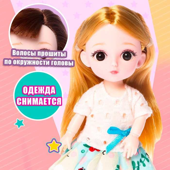 Кукла шарнирная «Амелия», 28 см, платье в клеточку