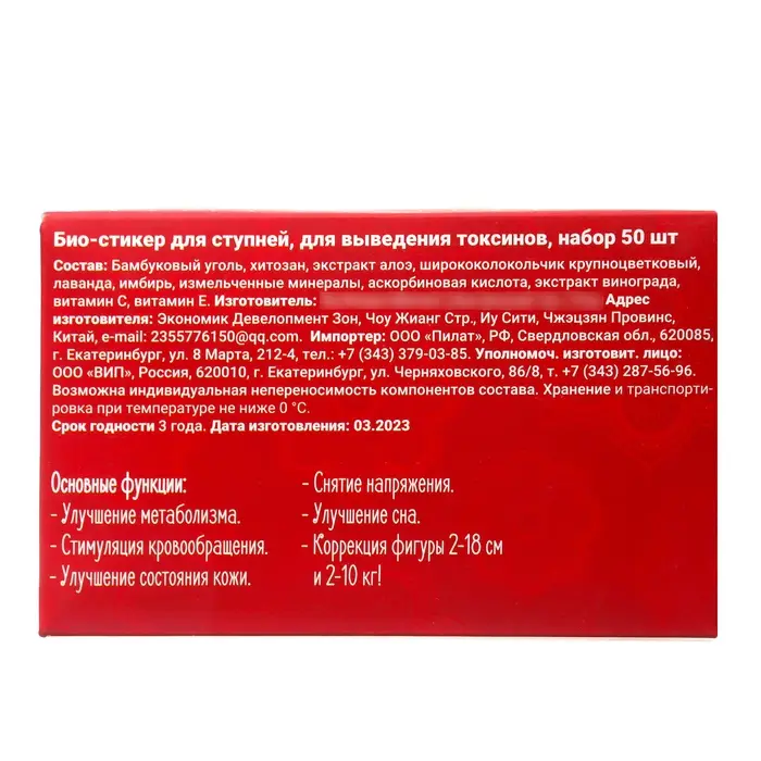 Био-стикер для ступней, для выведения токсинов