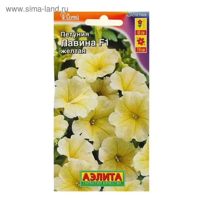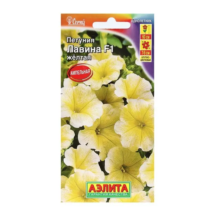 Семена Петуния Лавина F1 желтая крупноцветковая ампельная, 7 шт
