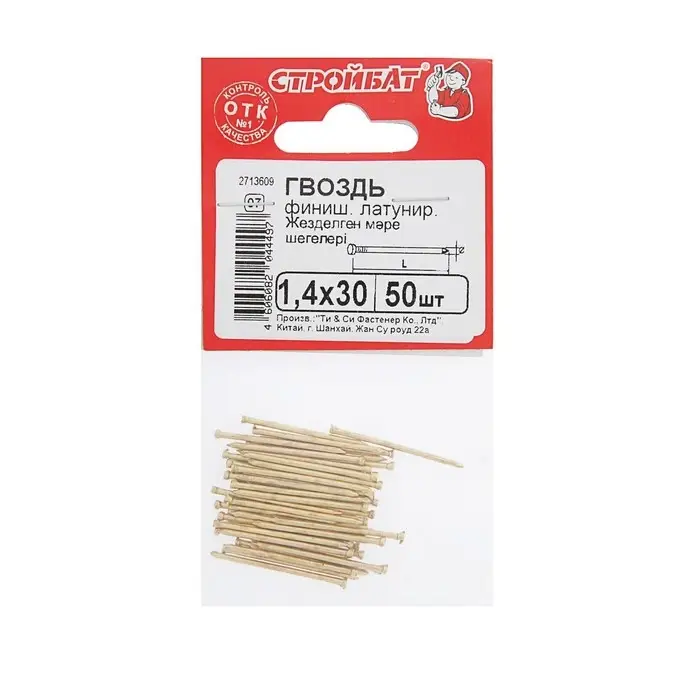 Гвозди СТРОЙБАТ, финишные, ГОСТ 7811-7035, латунированные, 1.4×30 мм, 50 шт.