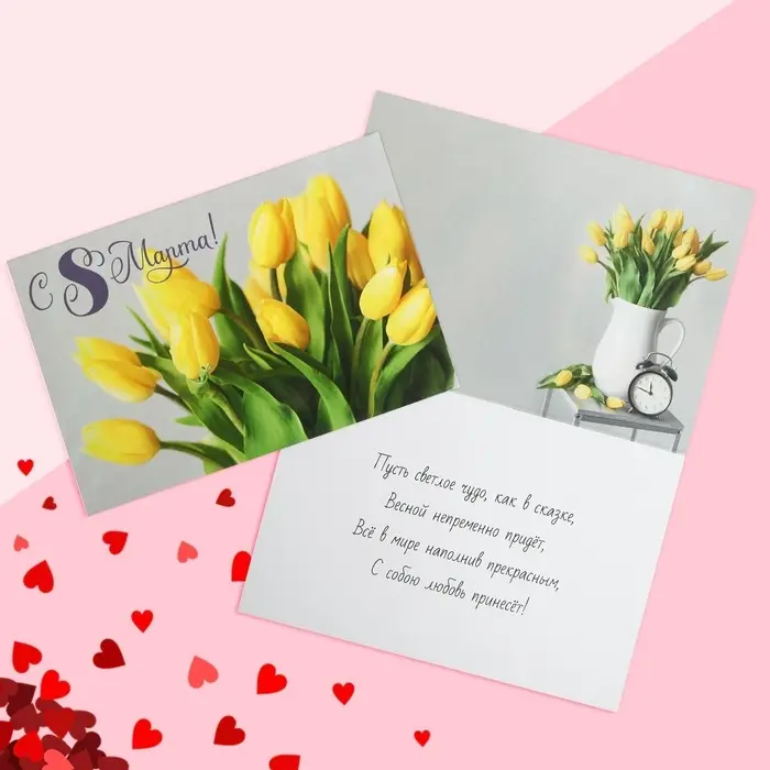 Открытка «С 8 Марта!», желтые тюльпаны, 12 х 18 см