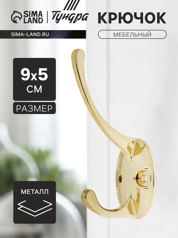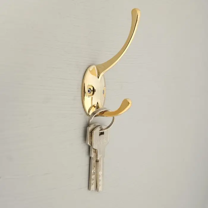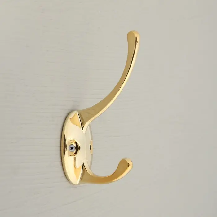 Крючок мебельный ТУНДРА TKD023, двухрожковый, золото