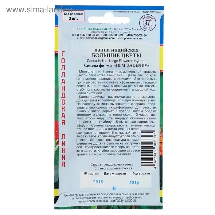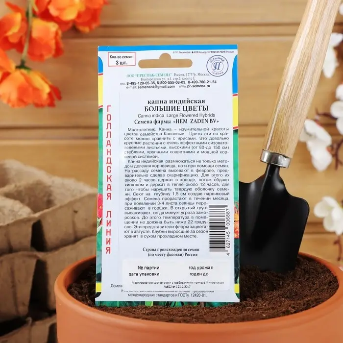 Семена цветов Канна индийская "Большие цветы", 3 шт