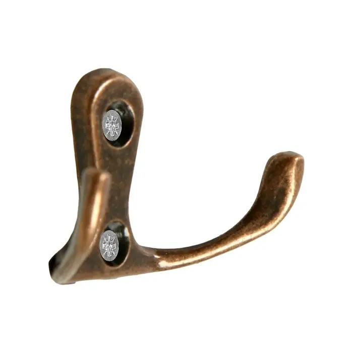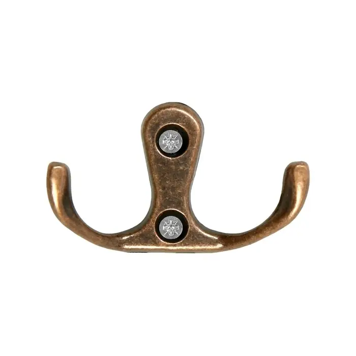 Крючок мебельный ТУНДРА TKd=004, двухрожковый, медь, 200 шт.