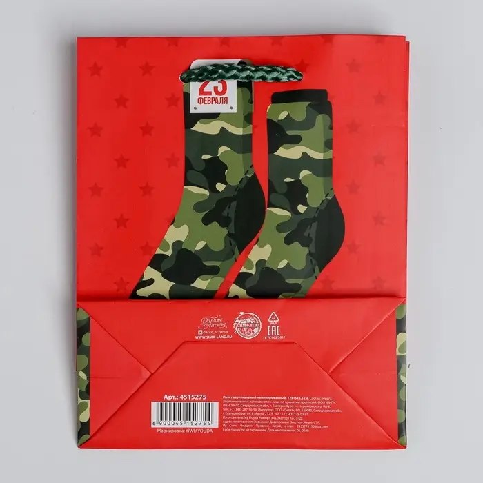 Пакет подарочный ламинированный, упаковка, «С 23 февраля», S 12 х 15 х 5.5 см