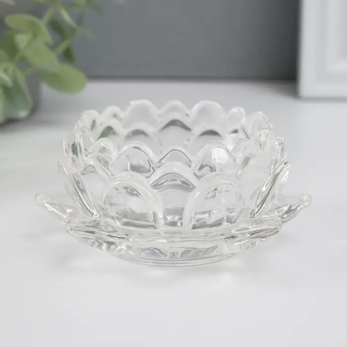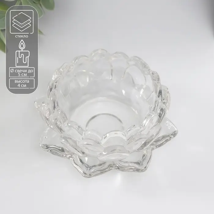 Подсвечник стекло на 1 свечу "Лотос" прозрачный 4х9,5х9,5 см