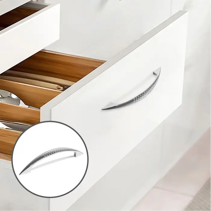 Ручка скоба - элегантная лицевая фурнитура, ручка-дуга плавной формы, хорошо смотрящаяся в классическом интерьере.