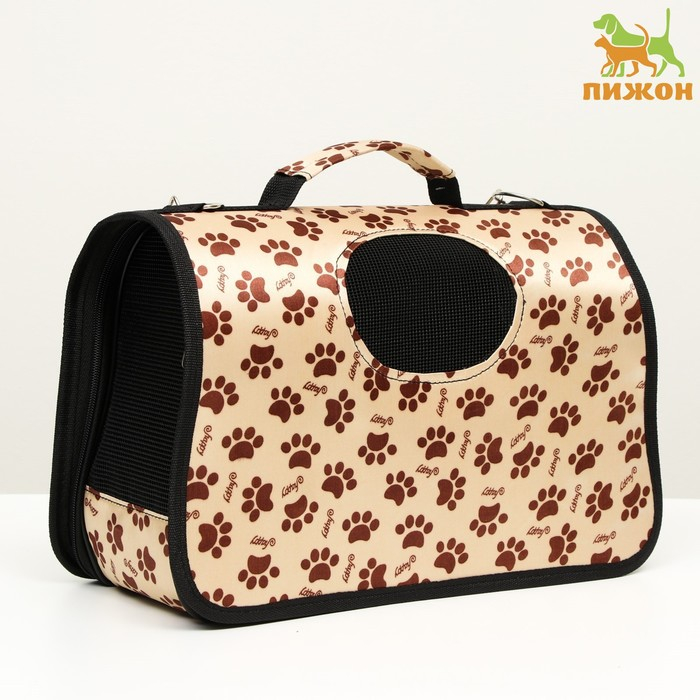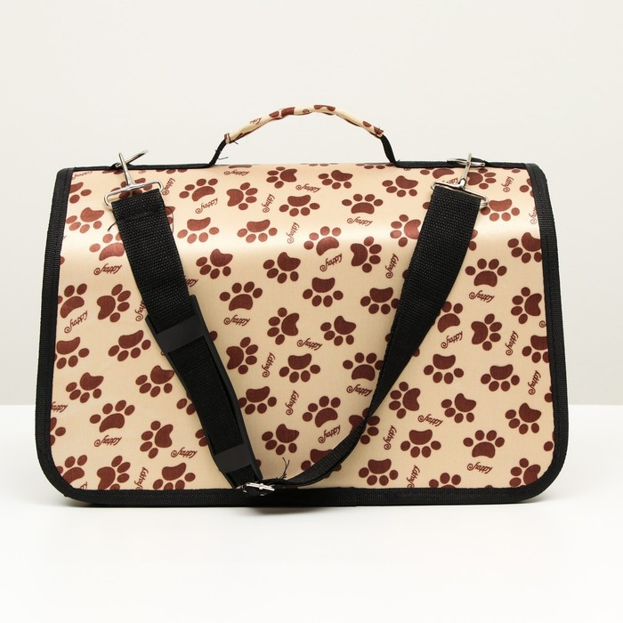 Сумка - переноска для животных "Лапки Happy", бежевая, размер М, 40 х 21 х 27 см