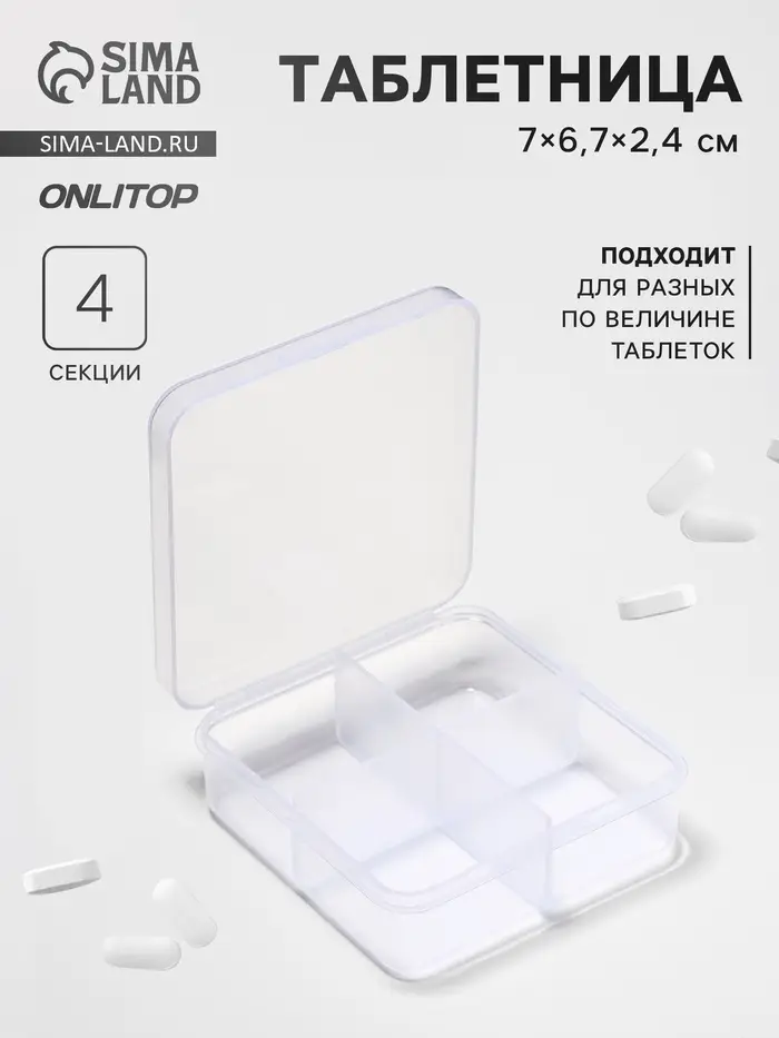 Размер таблетницы 7 × 7 × 2,6 см