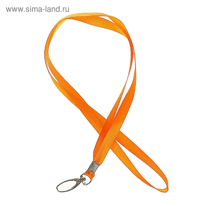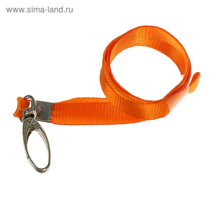 Лента для бейджа ширина-9 мм, длина-80 см с широким металлическим карабином, оранжевая