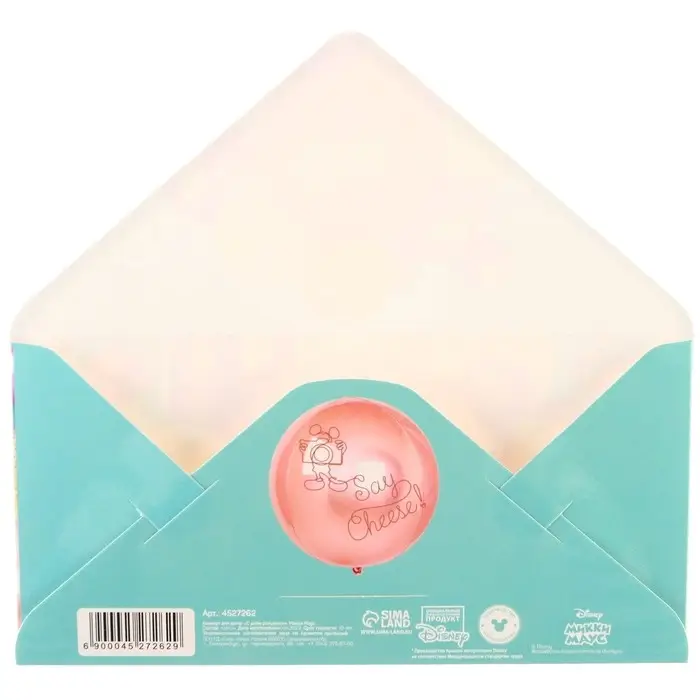 Конверт для денег, 16.5 х 8 см «С днём Рождения», Микки Маус