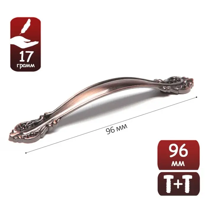 Ручка-скоба мебельная PC181, 96 мм, цвет медь