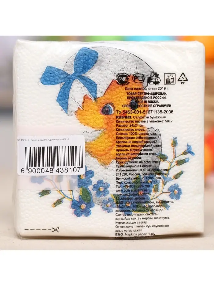 Пасхальные сервировочные бумажные салфетки Гармония цвета с рисунком «Цыплёнок» - это отличное украшение для вашего праздничного стола. Идеально подойдут как для сервировки, так и в качестве декора и украшения в домашних условиях или на больших мероприятиях. Праздничные салфетки с пасхальным рисунком будут хорошим подарком для родных и близких. Данные салфетки можно использовать так же для декупажа и коллажей.