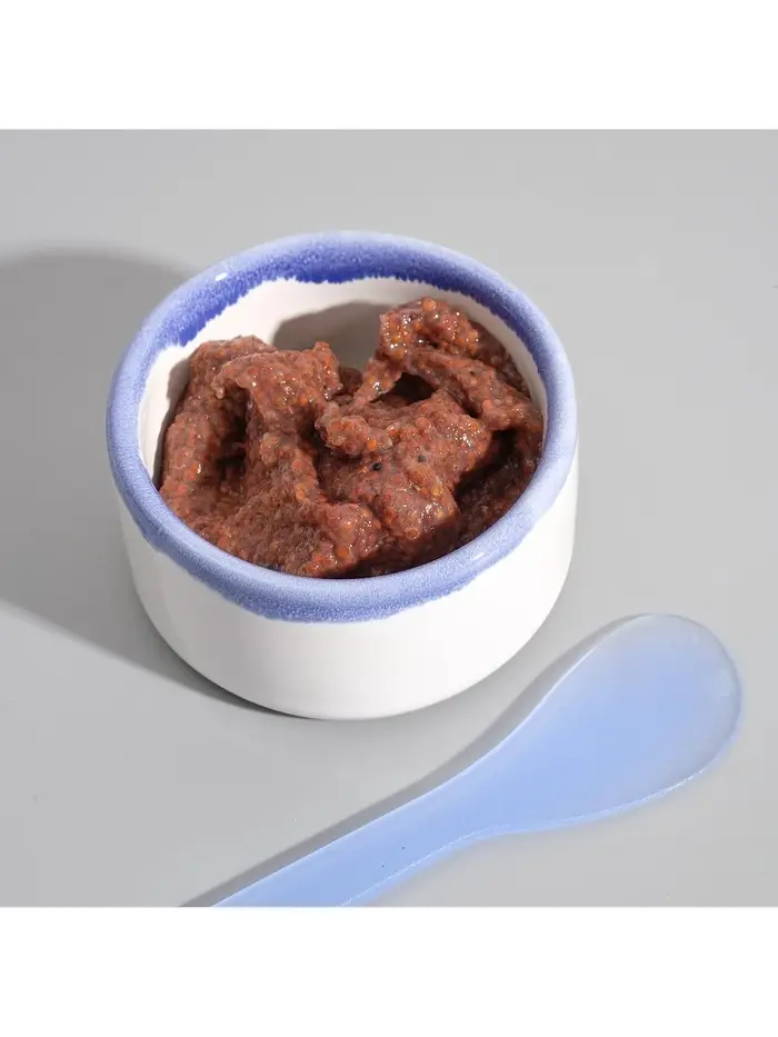 Маска представляет собой сухую сыпучую смесь, которую нужно разводить водой. При взаимодействии с жидкостью семена образуют пластичную массу.