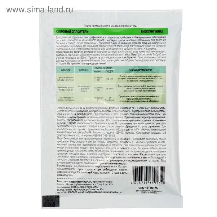 БИО фунгицид «Садовый спасатель», от болезней растений, 20 г