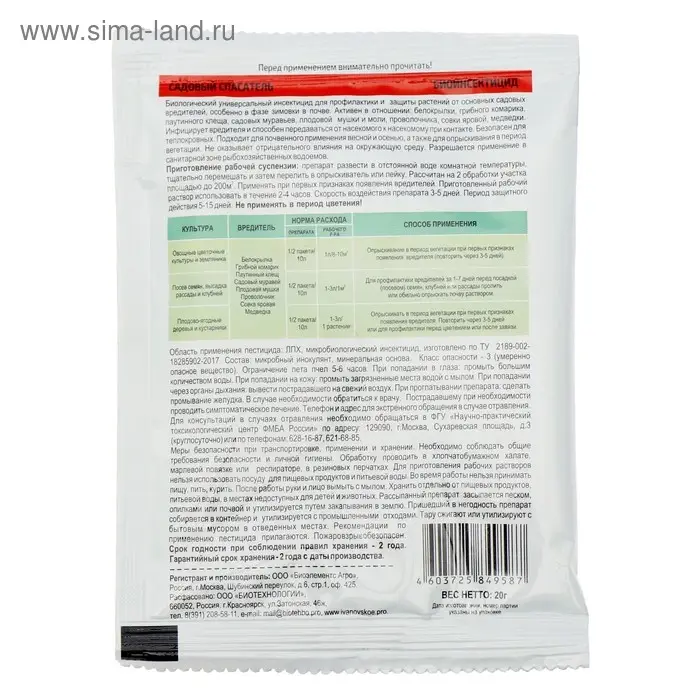 БИО инсектицид «Садовый спасатель», от вредителей растений, 20 г